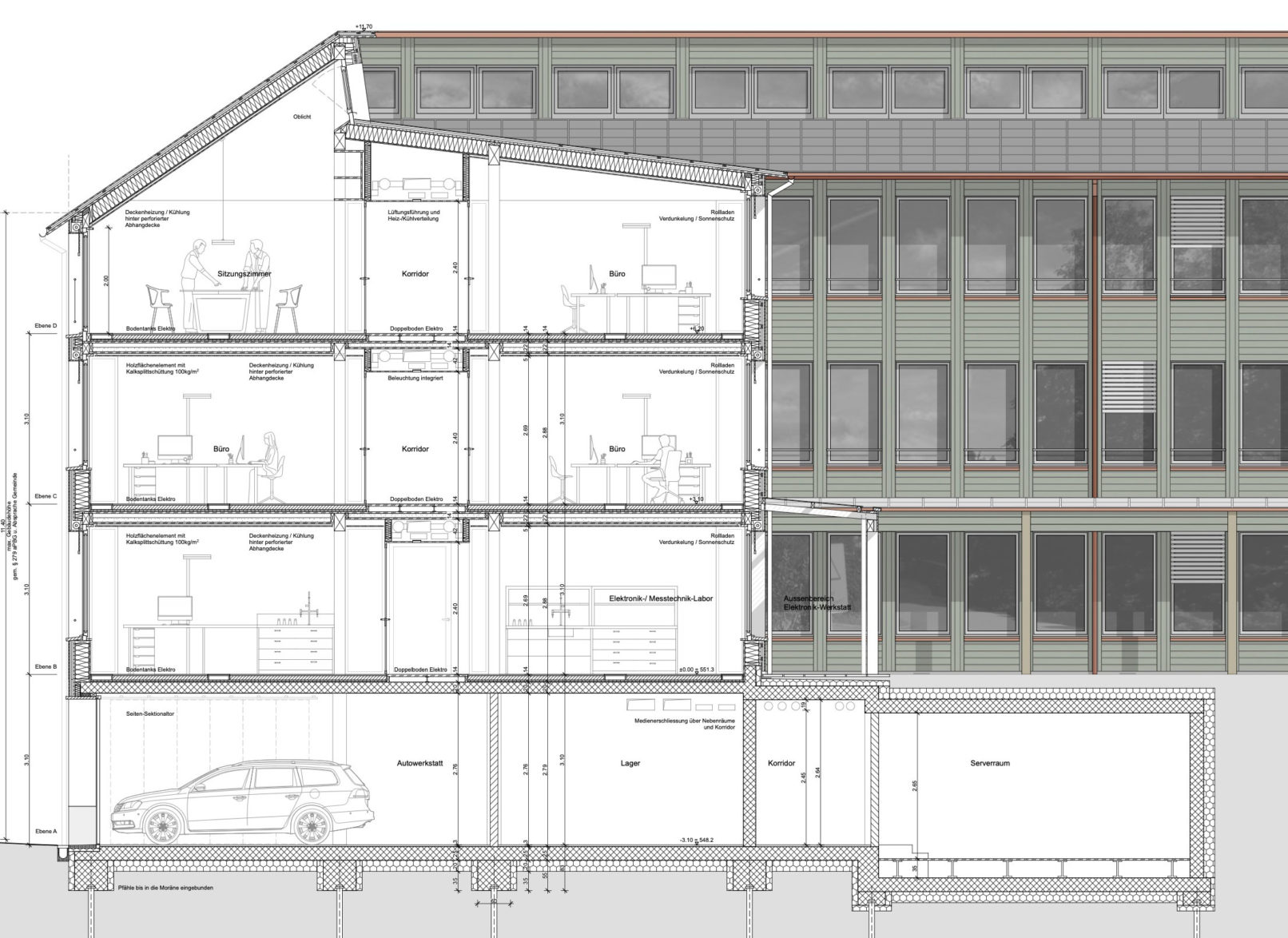 Büro-, Labor- und Werkstattgebäude in Holzbauweise und Minergie-P Eco