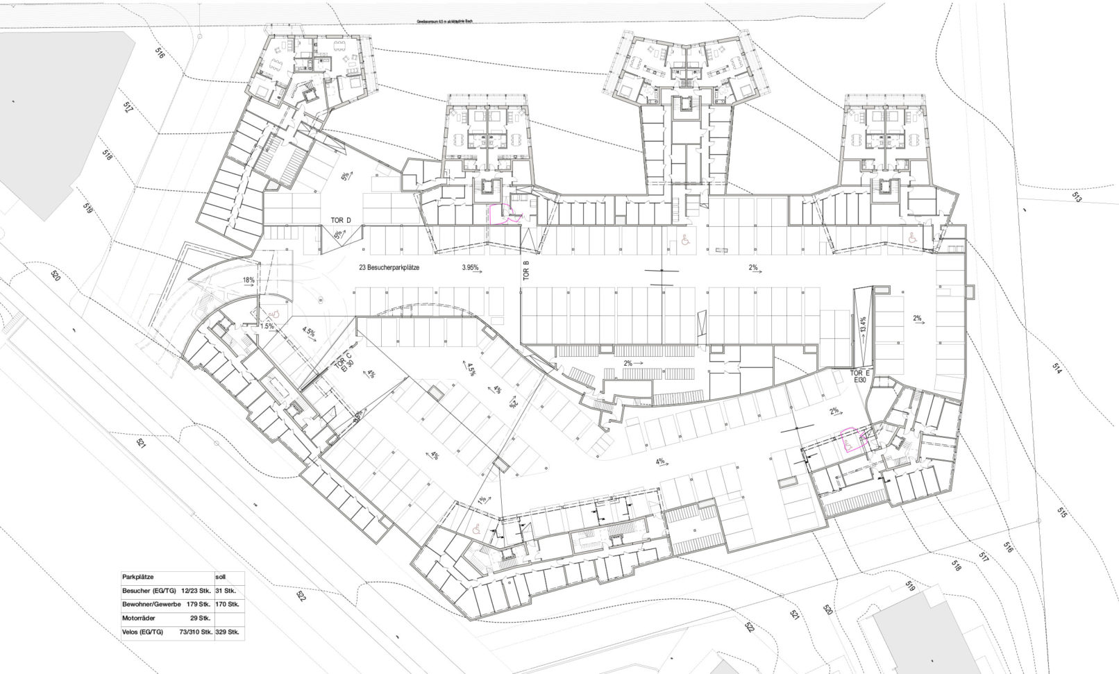 Innert drei Jahren haben wir zusammen mit Suter von Känel Wild als Raumplaner das Richtprojekt und die Dokumentation des Gestaltungsplans und im Anschluss daran mit unserem Planerteam das Vor- und Bauprojekt bis zum Verkauf der Liegenschaft ausgearbeitet.