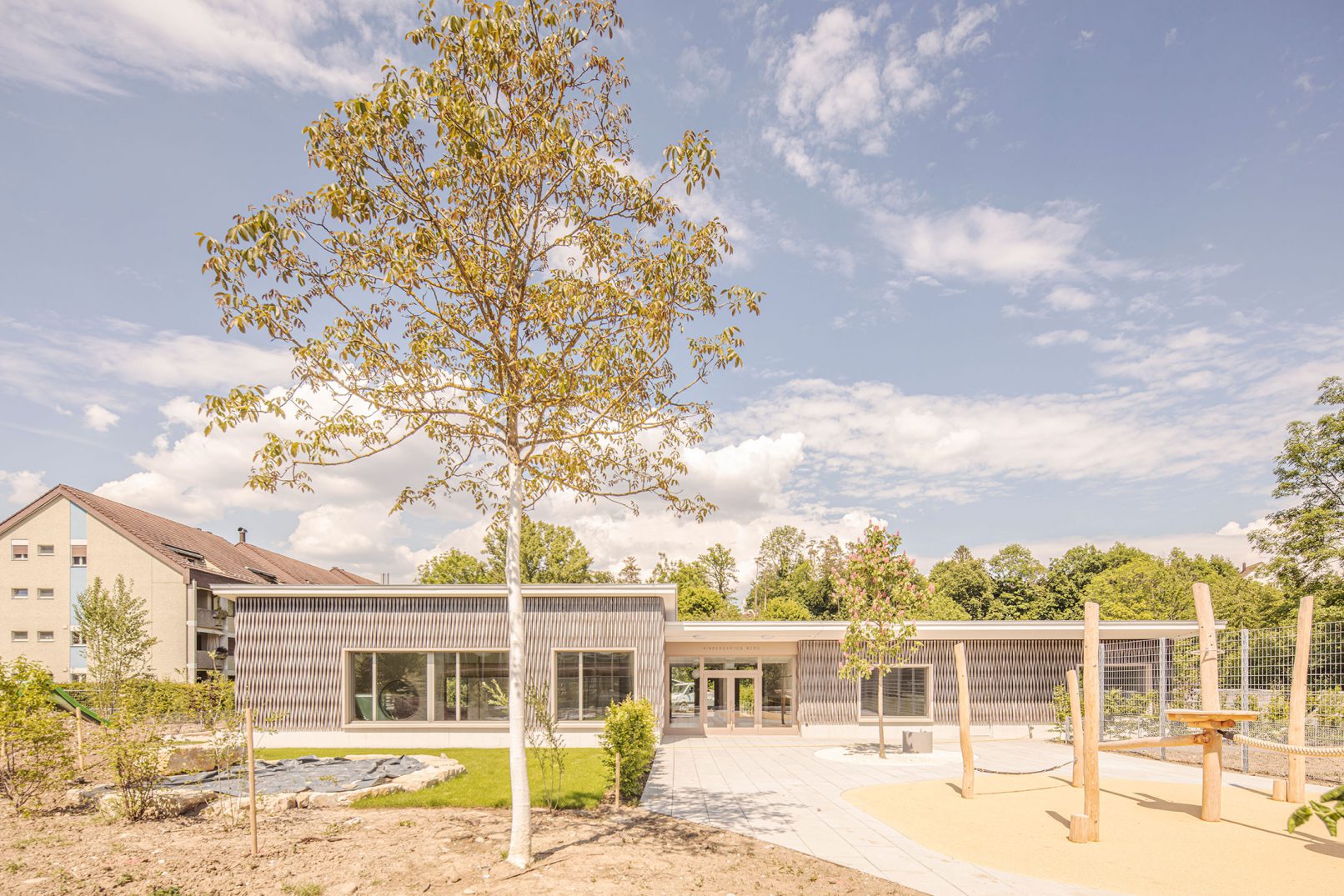 Der Neubau des Doppelkindergartens Werd ist ein Minergie-Eco zertifizierter konstruktiver Holzbau.
